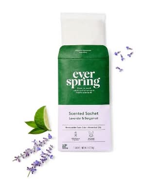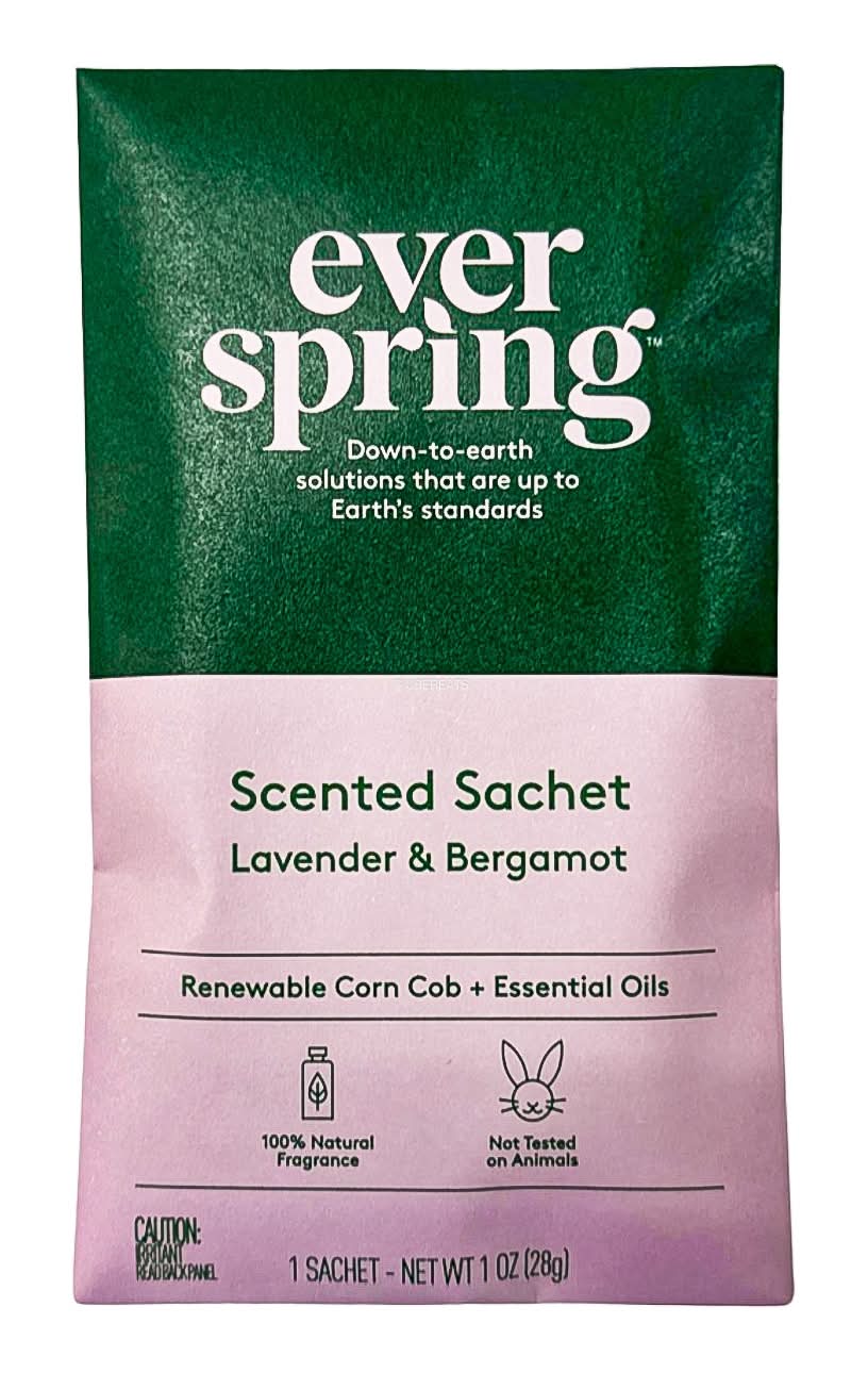 Make any space smell better with a Scented Sachet air freshener from Everspring™. This air freshener pouch is filled with renewable corn cob shavings that have been coated in essential oils for a great way to make any small spaces smell fresh without any harsh, unnatural chemicals. The 100% natural fragrance gives off a calming lavender and bright, bergamot, citrus scent that you'll love breathing in, whether you set the sachet in your dresser drawers, closet, laundry bag, gym bag, suitcase, or vehicle. Simply remove the sachet from its plastic wrapper, place it back in the resealable envelope and put it wherever a little freshening up is needed. The resealable envelope helps protect fabrics and surfaces during use. Tip: A gentle shake of the envelope revitalizes the fragrance for a burst of new freshness. Down-to-earth solutions that are up to Earth's Standards. 100% Satisfaction Guaranteed.