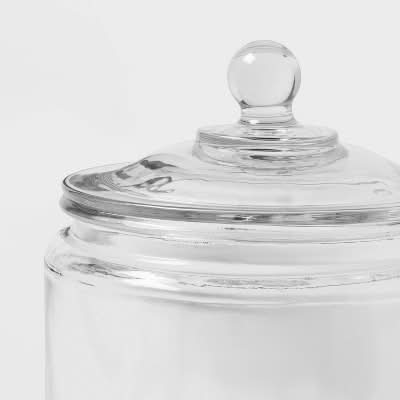 Complete your kitchen storage needs with this Glass Jar and Lid from Threshold. This glass jar makes a must-have pantry or kitchen essential. It features a classic design that fits well with any color scheme or kitchen decor, and a clear construction for easy identification of stored contents. The practical jar makes an ideal choice for storing a variety of food items and dry ingredients that are used in your kitchen. It includes a secure lid cover that helps to keep its contents fresh, and a knob-style top handle that allows for easy open and use. Threshold: Looks like home, feels like you. -64oz