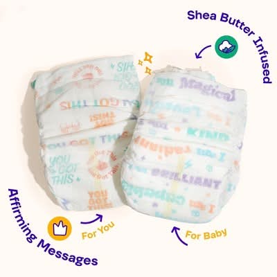 The Happy Hues Company is on a mission to nurture happy and healthy babies, inside and out. Meet Cuddlers: carefully crafted with the utmost care to be extra soft and gentle, providing a comforting fit for your little cuddlers. These super absorbent, shea butter-infused diapers boast cashmere-like softness and the ultimate combination of comfort and performance. The perfect way to experience premium softness, leak protection, and gentle care tailored for your baby’s delicate skin. Designed for ultimate comfort, this convenient trial size gives you a worry-free way to find the ideal fit for your little one before committing to a larger pack. Cuddlers are not just about exceptional comfort; they are designed to make your parenting journey smoother and more joyful. With a super absorbent core to shield your baby from wetness, double leak guards to protect against leaks, and a convenient wetness indicator to let you know when it’s time for a change, Cuddlers will help ensure that your baby stays dry and happy. Understanding the rewarding yet challenging journey a newborn brings, Cuddlers are thoughtfully designed with patterns that affirm and encourage both baby and parent. Every detail has been considered with you and your little one in mind to help make diaper changes a positive experience for everyone. At The Happy Hues Company, we believe you and your baby deserve quality products without breaking the bank or sacrificing standards. That’s why our products are made without parabens, lotions, fragrances, and phthalates. Instead, they’re carefully crafted with materials and manufacturing methods that prioritize the comfort and protection of your child. Choose Cuddlers for a diaper experience that combines superior performance, premium softness, and a dose of joy. Because your little cuddler deserves the very best, and so do you! Sizes 1, 2 and 3. Size up with Go-getters sizes 4, 5 and 6. Size: 2 M