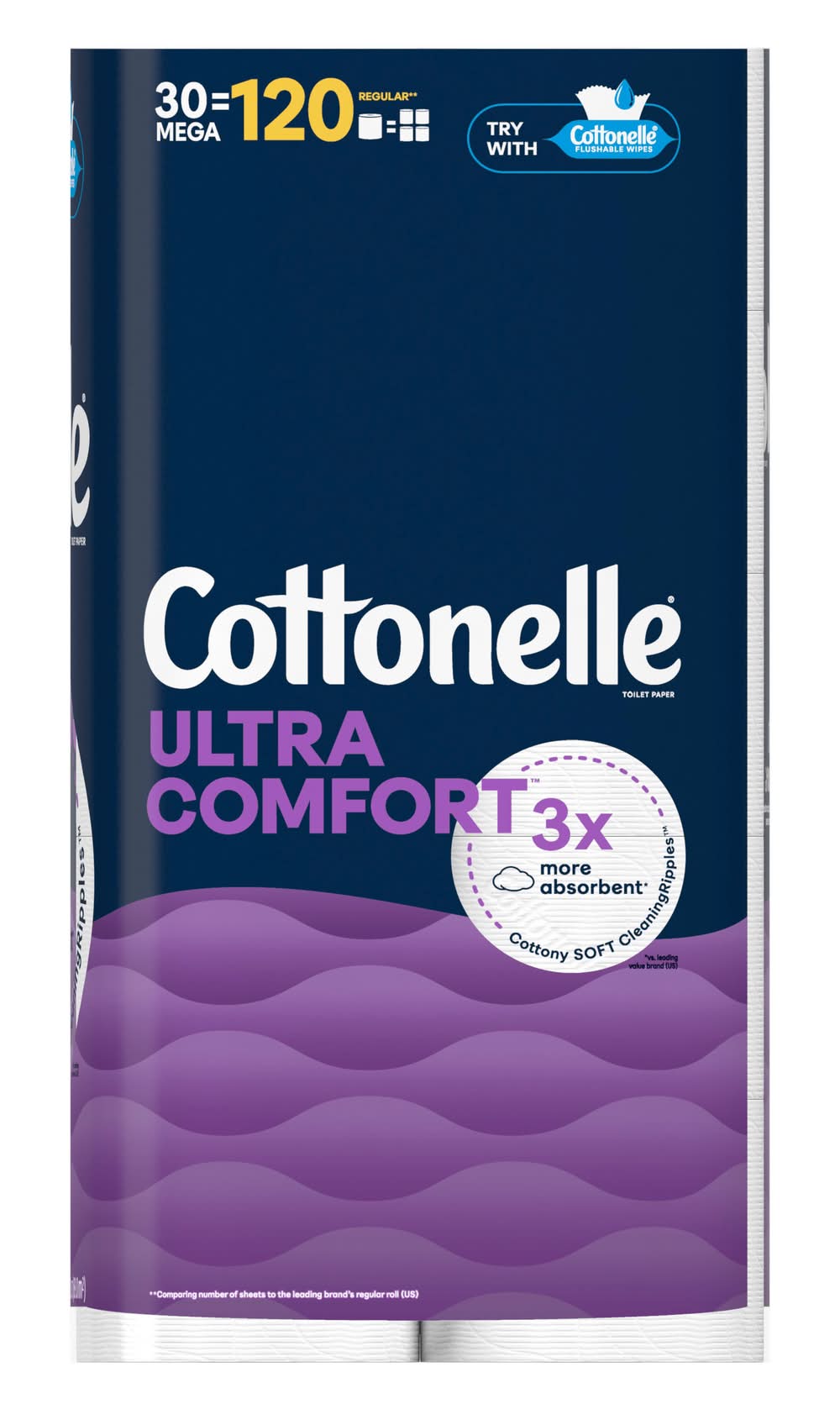 As our softest rolls ever features brand new Cottony Soft Cleaning Ripples designed to clean better and deliver unbeatable comfort Bath Tissue is 3x more absorbe to help you feel comfortably dry. Our toilet paper is made with 100% plant-based fibers and is FSC-certified, sourcing only from responsibly-managed forests. Each 2-Ply Mega Roll has 244 sheets per roll and is free of added perfumes and dyes. For more ways to feel clean, use flushable wet wipes. Keep stocked and order online with delivery to your door or pickup in stores. (per sheet than the leading US value brand) (vs the leading US value brand) (vs the leading US value brand) Packaging: Reusable