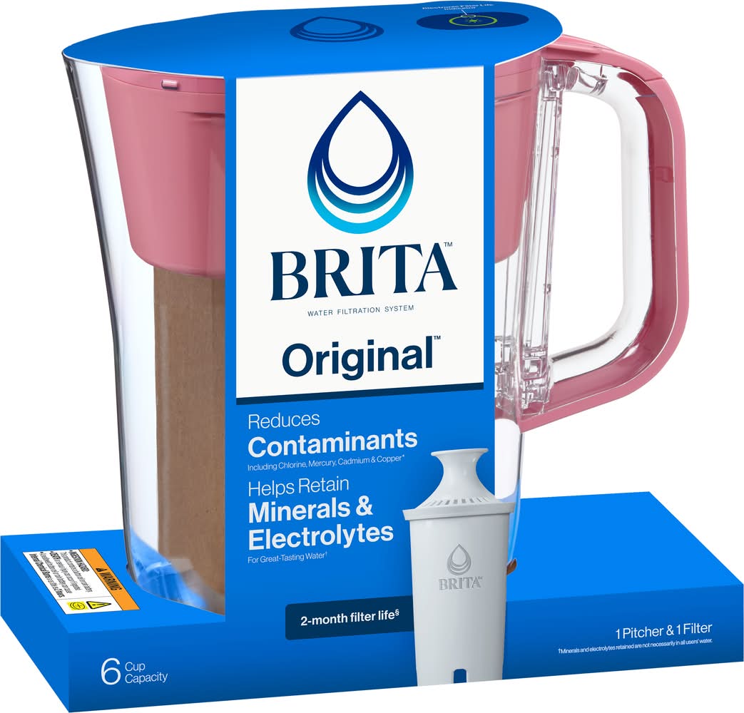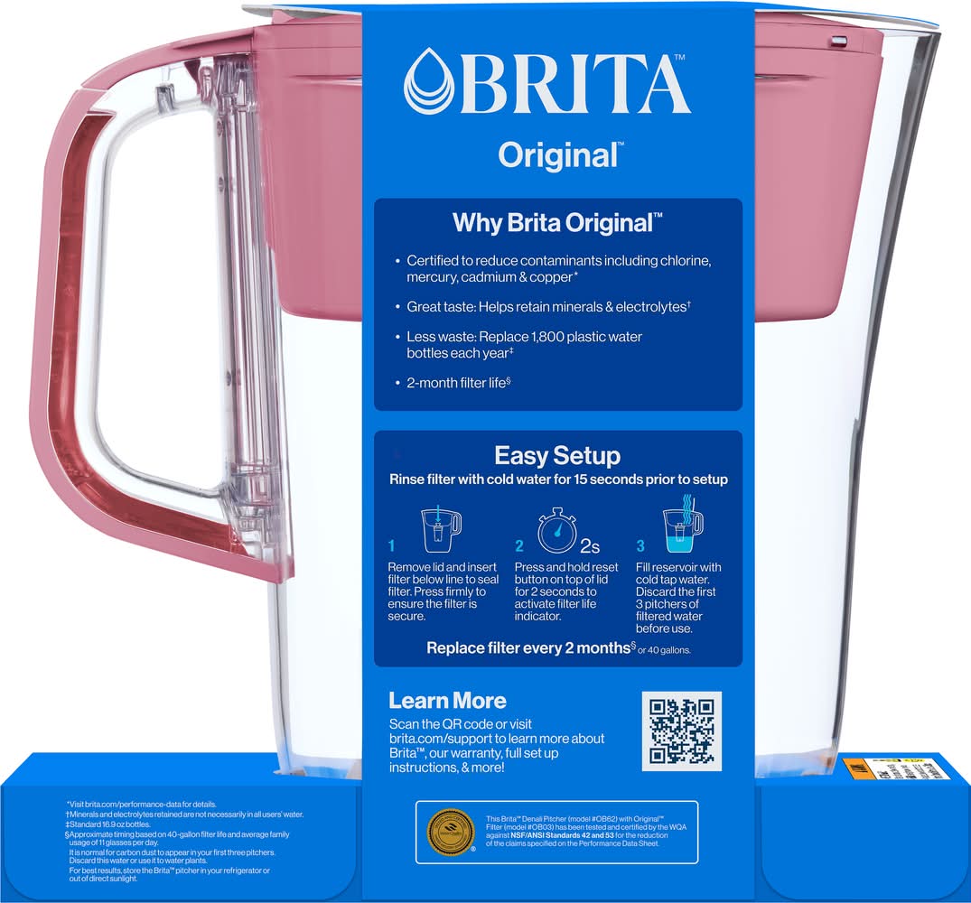 Brita Denali Pitcher Dispenser With Standard Water Filter, Cherry Blossom Pink