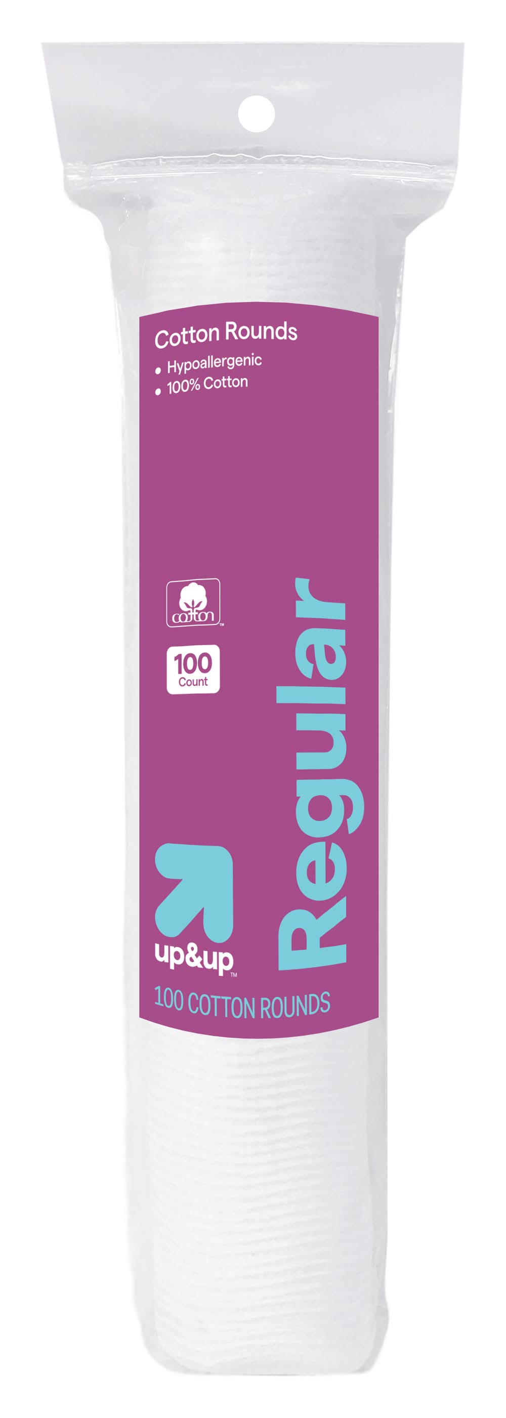 up&up Regular Cotton Rounds For Nail Polish & Makeup Remover Pads, 2.25 in, White (100 ct)