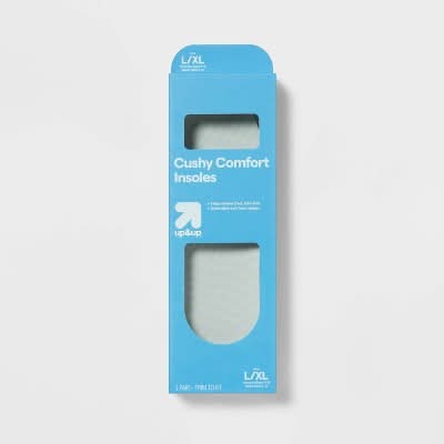 Each package contains one pair of insoles designed with extra thick, soft foam and a heel contour to provide improved foot support. Insoles can be trimmed to fit most sizes and keep you comfortably on your feet longer. up&up™: We believe making smart choices for the people, places, and pets in your life should be easy and affordable. And, having quality you can trust should be a given. That’s why you can count on our promise – caring for your everyday in every way. Satisfaction guaranteed – Love it or your money back. • Color: White • Size: L-XL
