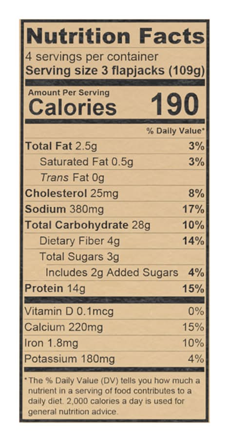 Ingredients: Water, 100% Whole Grain Wheat Flour, 100% Whole Grain Oat Flour, Wheat Protein Isolate, Whey Protein Concentrate, Brown Sugar, Milk Protein Concentrate, Leavening (Monocalcium Phosphate, Baking Soda), Eggs, Buttermilk, Sea Salt, Sunflower and/or Soy Lecithin Contains: Eggs, Milk, Soybeans, Wheat, Oat