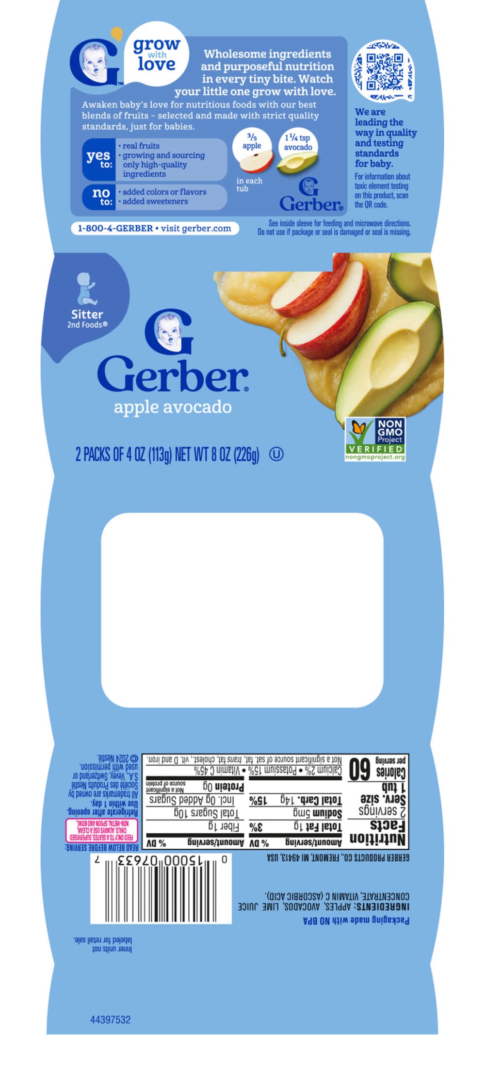 Sitter 2nd Foods Apple Avocado Gerber Products Company, Fremont MI 49413