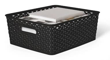 Declutter your home with the Y Weave Storage Bin Medium from Brightroom™. This plastic storage basket has a visually exciting Y-weave that is a pretty addition to your décor and holds all of those odds and ends you have no idea what to do with. Now you can have toiletries, games, pet toys, healthy snacks and just about anything tucked out of sight and within easy reach with a durable storage bin. Brightroom™ started with a simple truth: When you’ve got it together, you feel better. Our versatile designs reveal the possibility in every closet, cupboard and drawer, and work together to create brilliant ways to organize your every day. • Color: Black • Size: M
