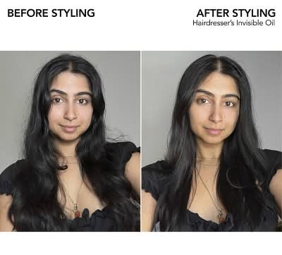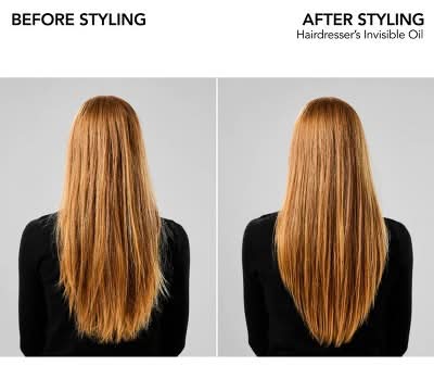 This transformative clear oil instantly vanishes into hair – leaving a frizz-free, feathersoft feel and a trace of shine. This lightweight blend of six oils absorbs quickly into hair to help soften, silken, tame, defrizz, detangle – and protect against breakage and UV damage. Dry, dull hair gets a sublime transformation. How To Use: Work sparingly into damp hair before heat-styling, or smooth through dry hair for a shiny finish. (Start small, but add more when necessary.) Pro-Tip: If your hair needs bonus moisture, add a few drops into your conditioner. Key Ingredients: Cocos Nucifera (Coconut) Oil, Argania Spinosa Kernel Oil, and Macadamia Integrifolia Seed Oil: Condition, soften, and add shine. UV Filters: Help protect hair against the drying effects of the sun.