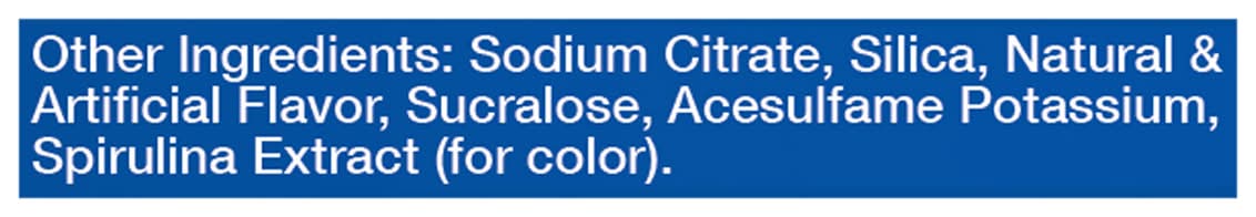 Ingredients: Other Ingredients: Sodium Citrate, Silica, Natural & Artificial Flavor, Sucralose, Acesulfame Potassium, Spirulina Extract (for Color) Contains: Milk, Eggs, Soybeans, Wheat, Crustacean Shellfish, Fish, Tree Nuts, Peanuts