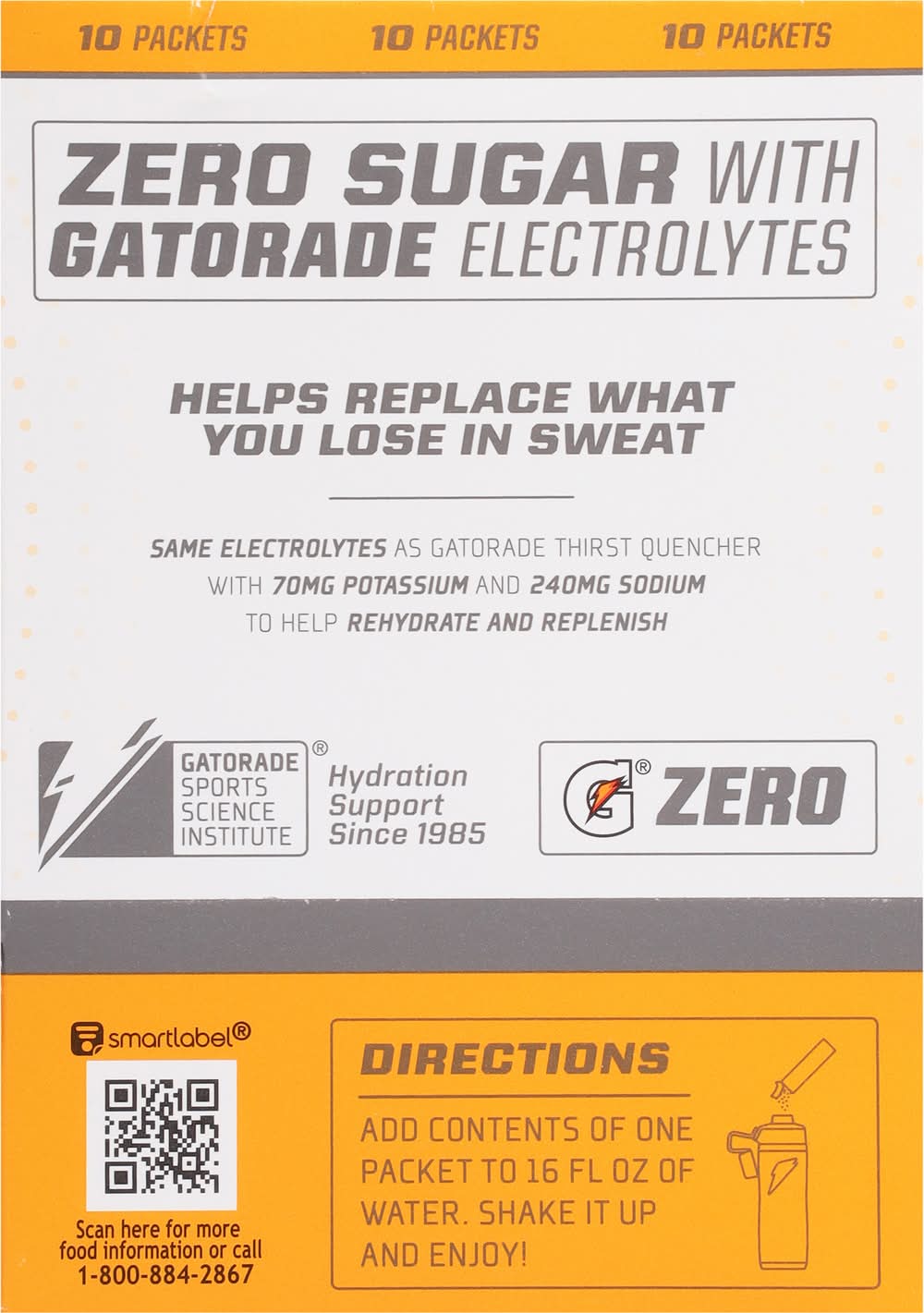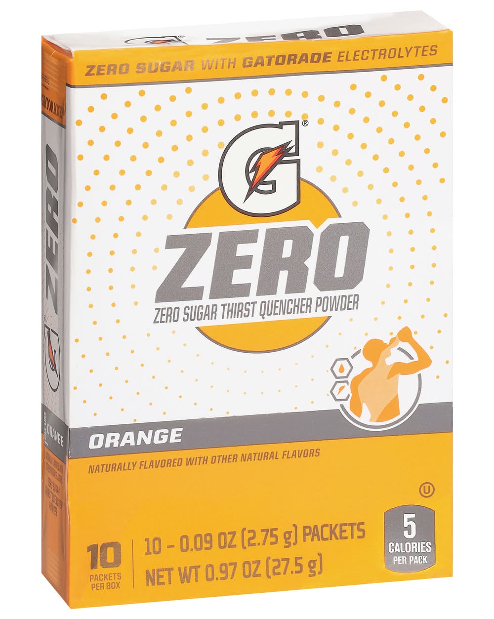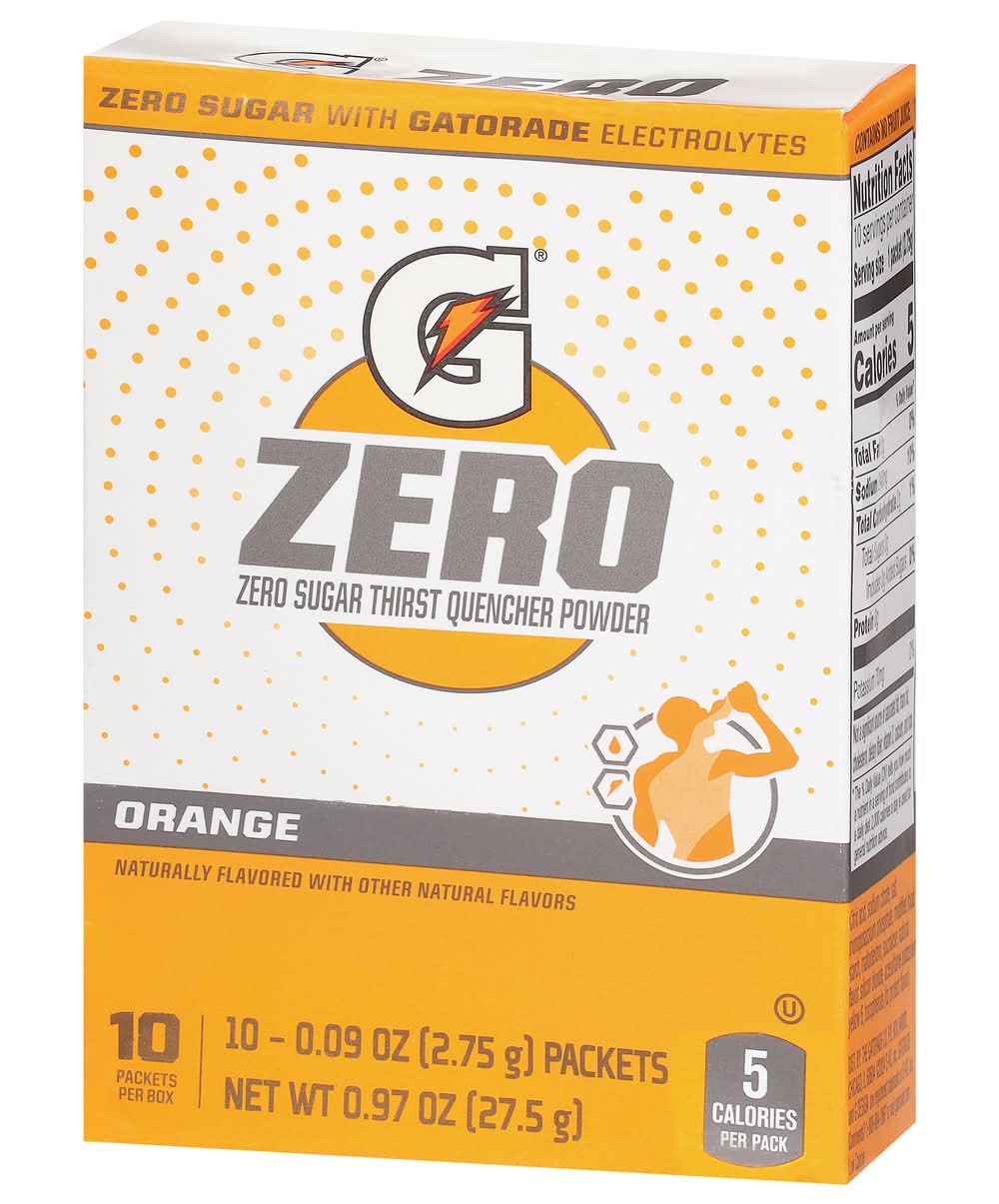 Gatorade Zero Sugar Thirst Quencher Sports Drink Powder, Orange (10 x 0.09 oz)