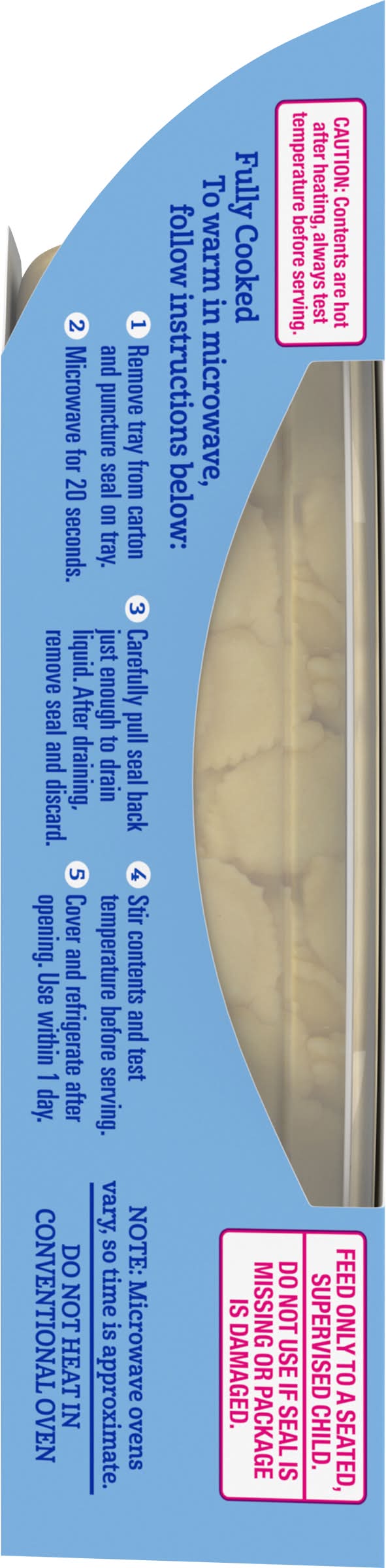 Handling & safety instructions: 1. remove tray from carton sleeve. 2. puncture seal on tray and microwave on high (100% power) for 20 seconds. 3. carefully pull seal back just enough to drain liquid. after draining, remove seal from entire tray and discard. 4. stir contents and test temperature before serving. 5. cover and refrigerate after opening. 6. discard unused portion after 1 day.