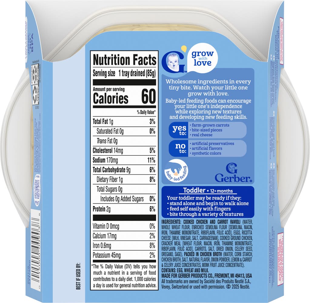 Toddler (12+ Months) Chicken & Carrot Ravioli Packed in Chicken Broth Gerber products co., Fremont,MI,49413,USA