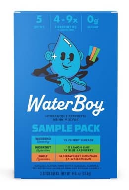 All 3 of our formulas (weekend/workout/daily) now in one package! Whether you are going to the gym, out with Jim or everything in between - we've got you recovered 💧 What makes Waterboy different? 1. Waterboy makes recovery formulas to tackle specific events in your life, not an average, one-dehydration-fits-all product sold here. 2. All formulas have 2-3X+ more electrolytes than our main competitor who shan’t be named but rhymes with Shmiquid SmIV. 3. Our sugar-free hydration. 4. Our sparkling personalities. Love & Electrolytes, Waterboy • Flavor: Assorted • Pack size: 5