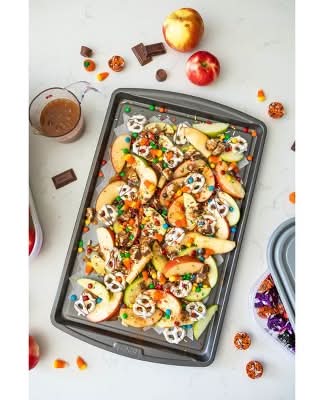 Designed with home bakers in mind, this nonstick baking sheet ensures a perfect bake every time for your favorite recipes, from cookies and other desserts to sheet pan dinners. The multi-use pan can also be used for roasting vegetables, baking meatloaf, roasting chicken, or making casseroles. This cooking sheet distributes heat evenly for thorough baking, and the scratch-resistant, dishwasher-safe nonstick coating provides excellent release while also making clean up quick and easy. It is also metal spatula safe so you can serve your baked goods right off the sheet. The wider lip on the sides of the pan makes it easier to grasp to get it in and out of the oven safely and contains juices for spill-free roasting. This sheet is made with dishwasher safe, professional grade steel with a gray finish to offer high quality baking for years to come. For over 30 years, it has created the tools that have made life in the kitchen easier and more enjoyable. As we’ve grown, we strived to stay on trend and continually incorporate more function and value into our kitchenware products. We take pride in the fact that products are being used every day, and that our name is recognized as a helpful resource supplying products, recipes and inspiration for home cooks across America. • Color: Gray • Size: 11x17 in