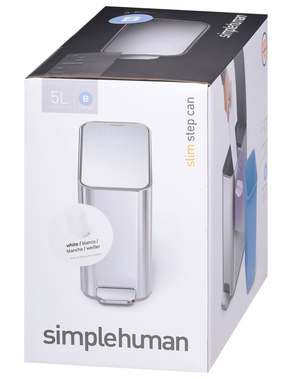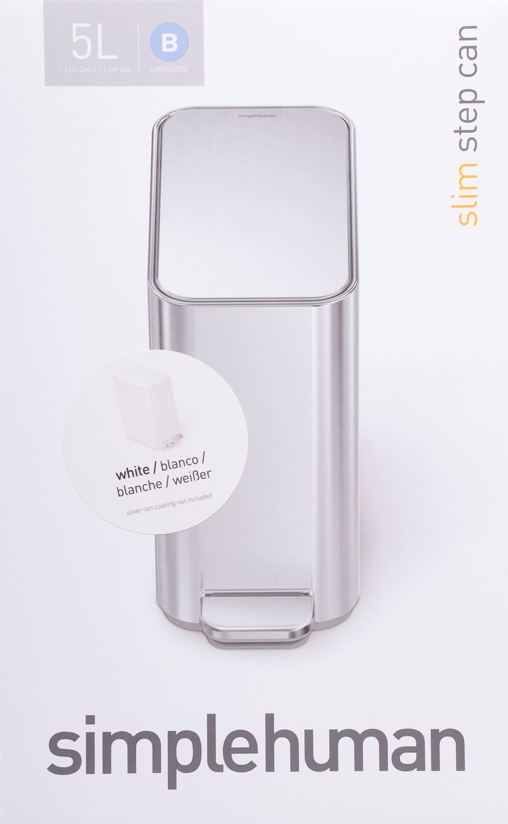 Simplehuman Slim Bathroom Step Trash Can 5L, White
