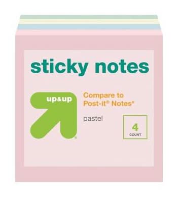 up&up Sticky Notes, 3x3 in, Pastel (4 ct)