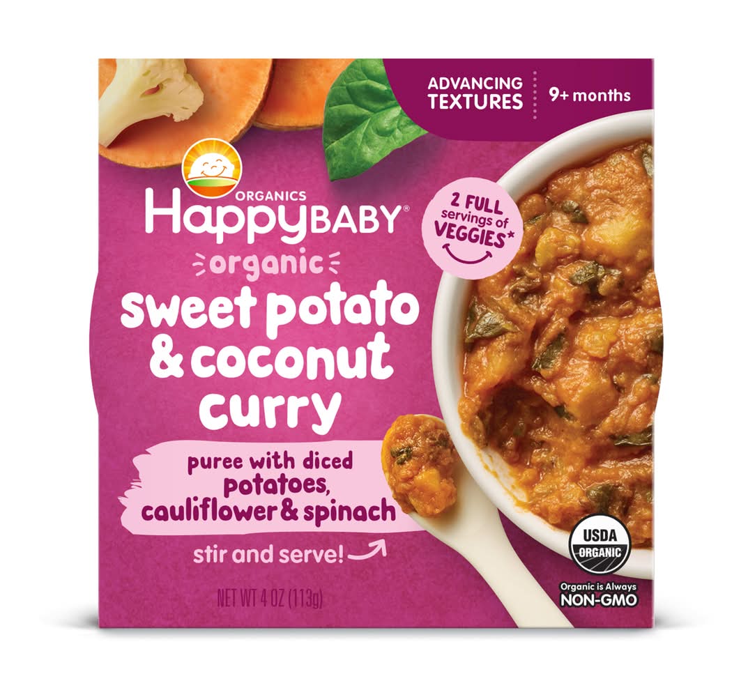 Happy Baby Texture Sweet Potato & Coconut Curry Puree With Diced Potatoes Cauliflower & Spinach (4 oz)