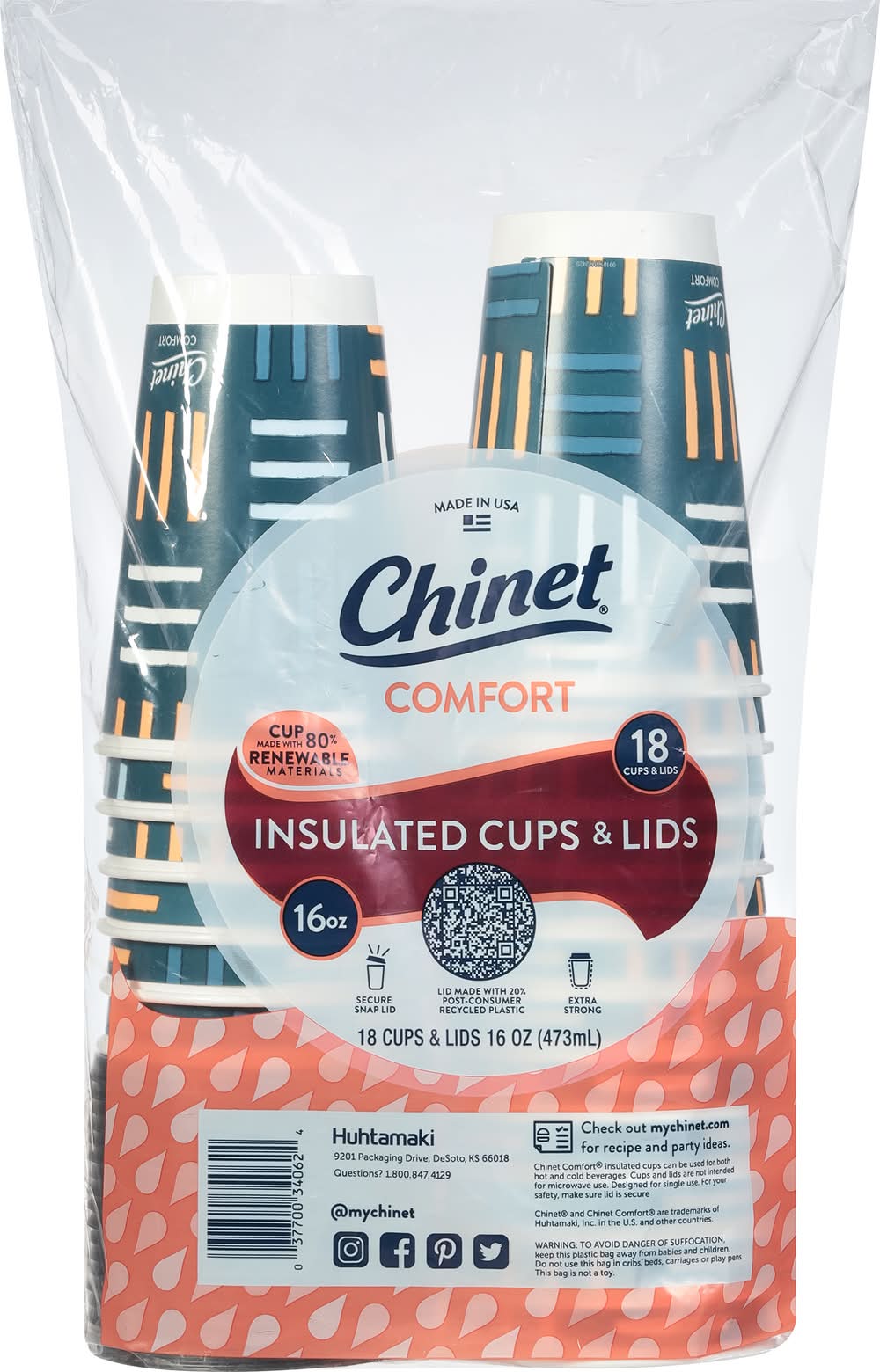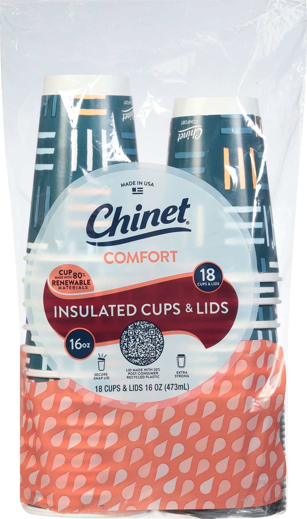 Chinet Double-Layer Comfort Insulated Cup & Lids 16 oz (18 ct)