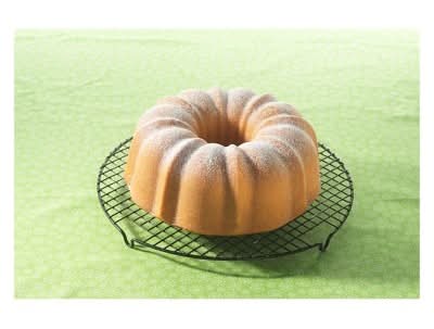 This full size 12 cup Bundt(r) pan is made from cast aluminum that heats evenly for perfect cake texture and color. Sturdy cast aluminum provides superior baking performance. The pan is non-stick coated for easy release and clean-up. Bakes elegant, picture-perfect cakes with ease in a shape loved by millions. The pan can be used for many Bundt(r) recipes, pull-a-part bread, monkey bread as well as being a great jello mold. Use with a bakers non-stick spray (flour-based) to help release easily. We recommend that the pan be hand washed to help extend the life of the non-stick coating. Color: Silver