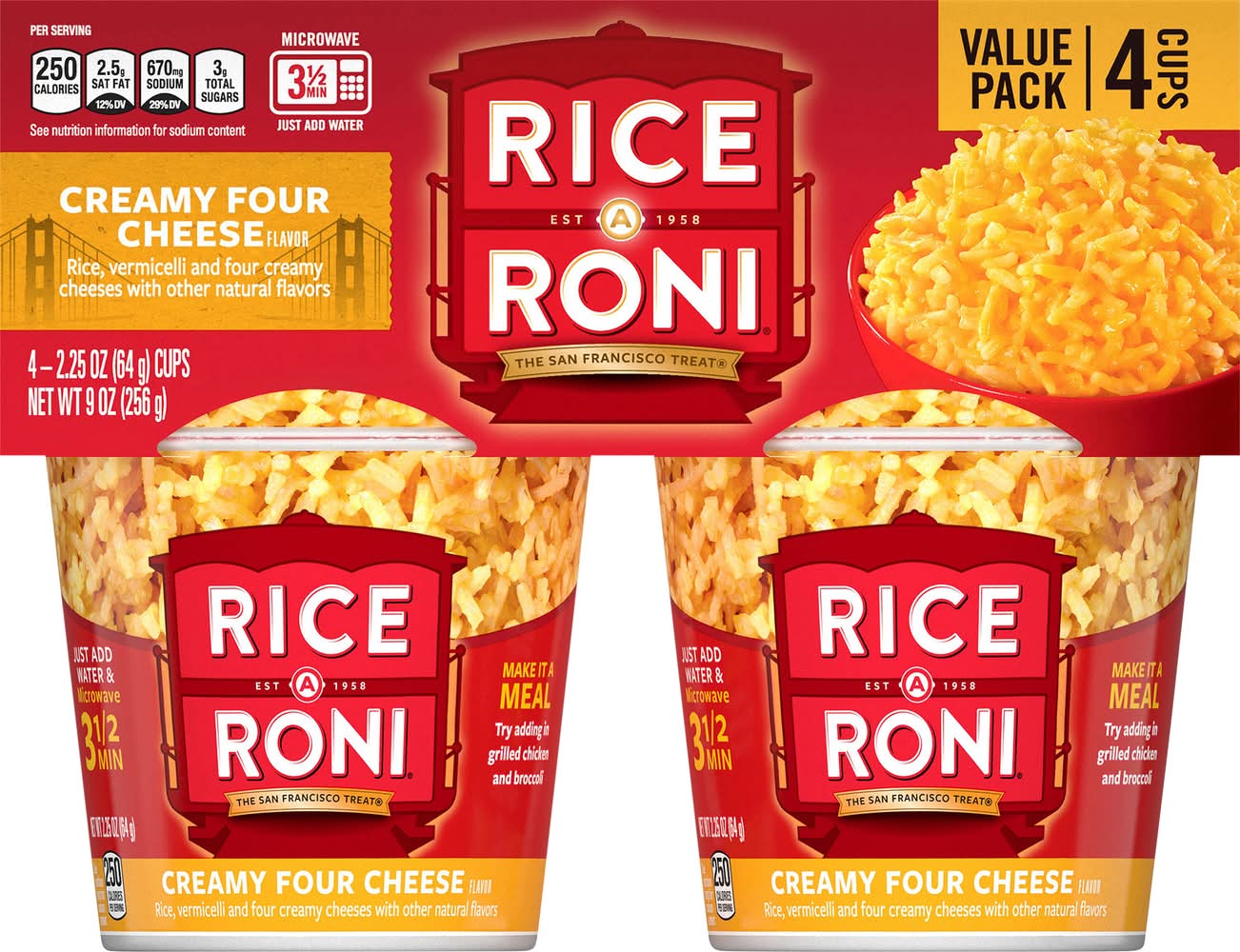 Rice-A-Roni Rice Cups Value pack, Creamy Four Cheese (4 x 2.25 oz)