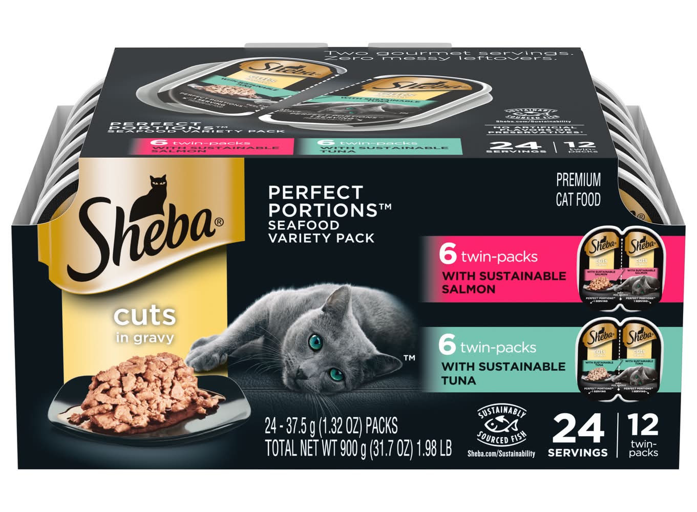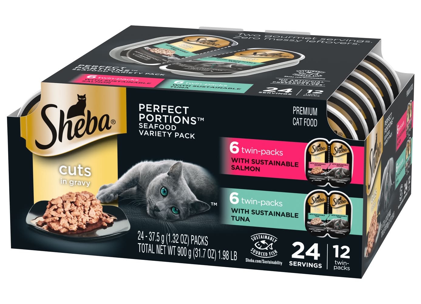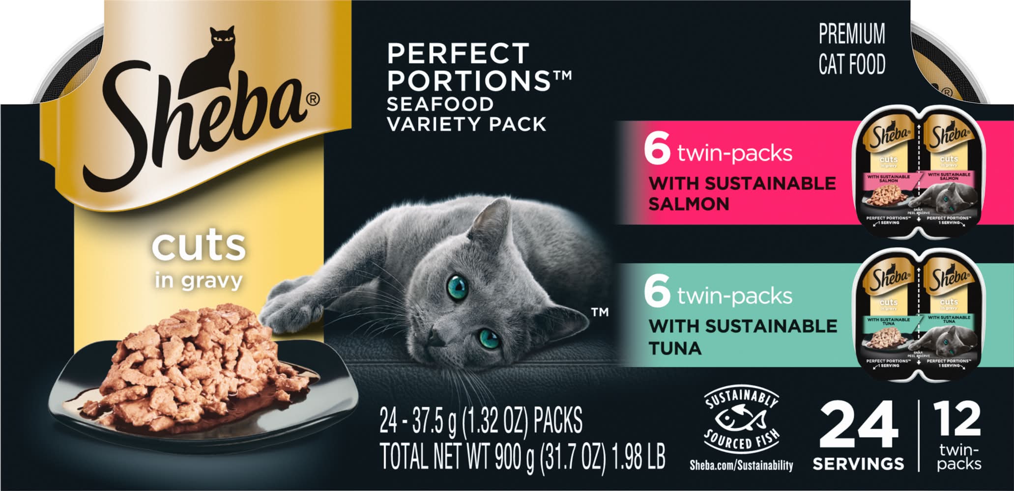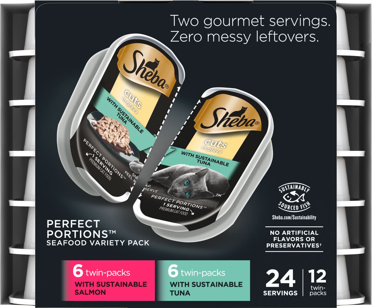 Sheba Perfect Portions Seafood Variety pack Wet Cat Food, Salmon-Tuna (24 x 1.32 oz)