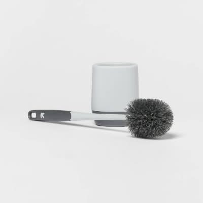 Keep your toilet clean and sanitary with this Toilet Brush with Holder from The brush's soft-grip handle makes it easy to use, and the non-slip base keeps it securely in place in your bathroom. Plus, the ventilated base and drip tray enhance cleanliness and minimize dampness. Best of all, the set includes a 17.05-inch holster and a splash guard to help protect your bathroom from germs. We believe making smart choices for the people, places, and pets in your life should be easy and affordable. And, having quality you can trust should be a given. That’s why you can count on our promise – caring for your everyday in every way. Satisfaction guaranteed – Love it or your money back.