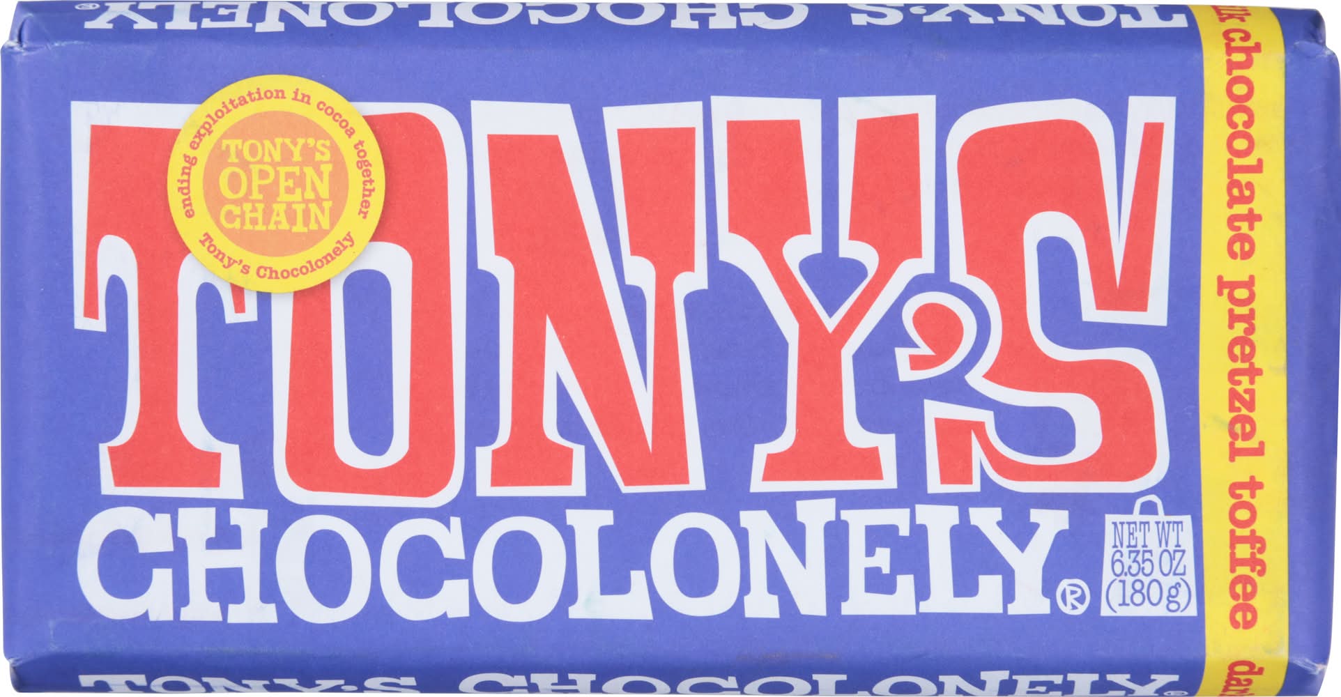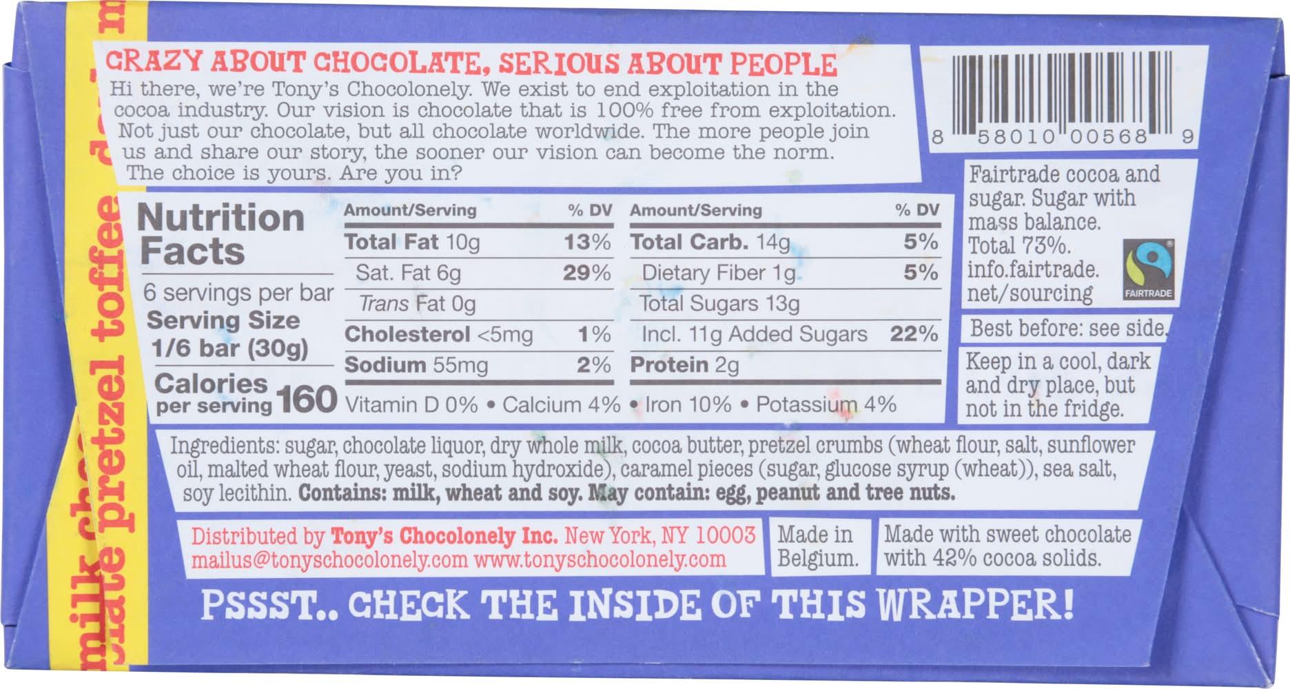 Tony's Chocolonely Milk Chocolate Bar With Pretzel & Toffee (180 g)