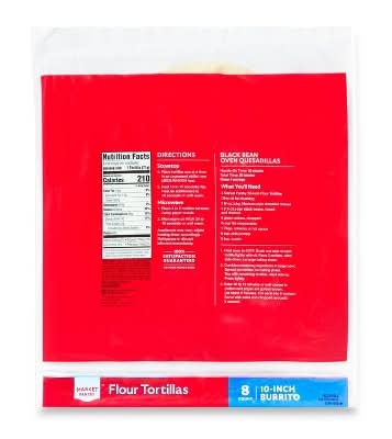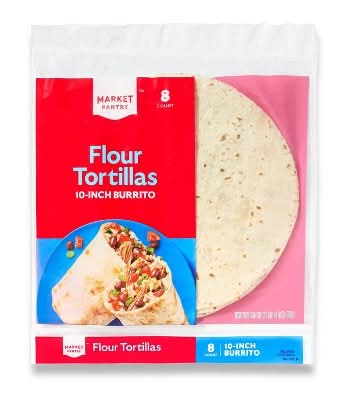 Whip up delicious burritos with 10-Inch Flour Tortillas from market pantry. Eight tortillas are included in this pack, perfect for a family dinner or to enjoy over several servings. The 10-inch size is ideal for rolling up burrito fixings — like rice, beans, beef/chicken, shredded lettuce, salsa and more — or for making a yummy quesadilla with the same type of ingredients. These tortillas are ready to eat with simple heating, making lunch or dinner a breeze to prep. • Size: 10" • Packaging: Reusable