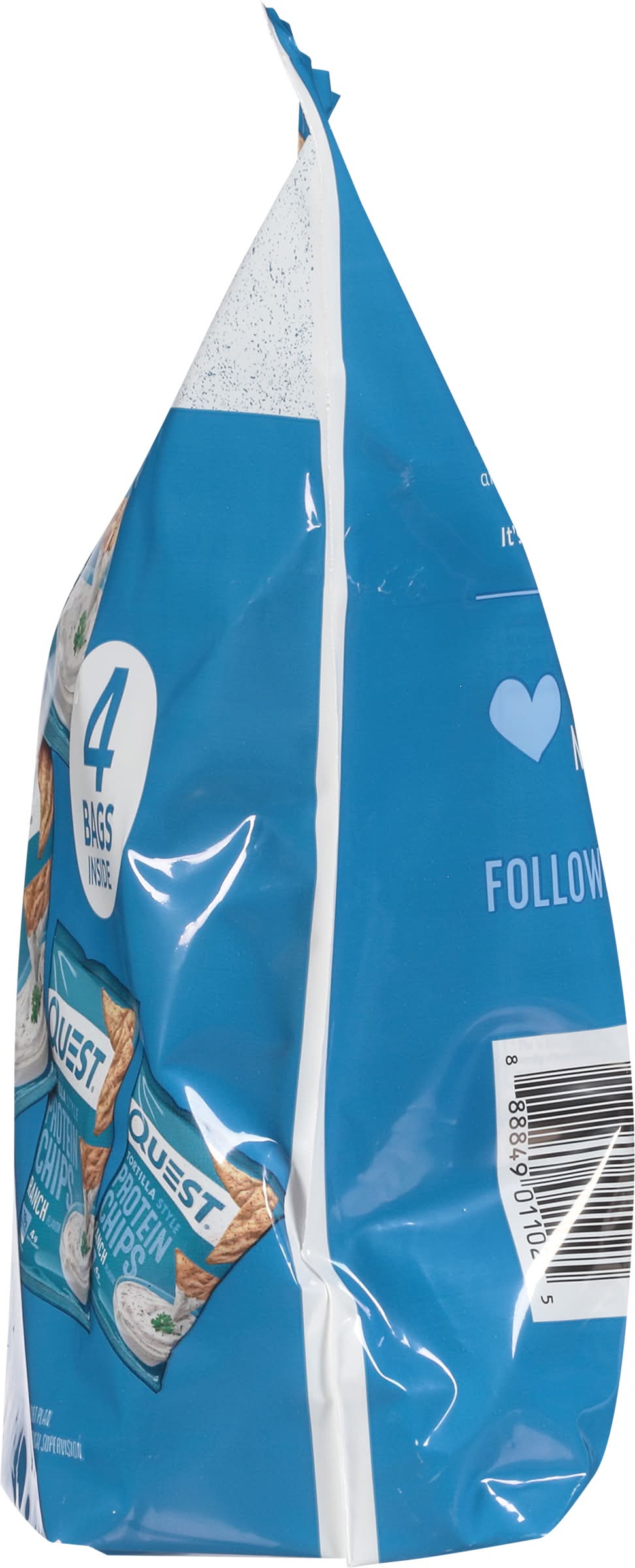 19 g protein per serving. 4 g net carbs (5 g total carbs - 1 g fiber = 4 g net carbs). Certified gluten free. gfco.org. Gluten free. Contains a bioengineered food ingredient. What's your Quest? Ours is to support you with delicious, athlete-worthy nutrition. We use only quality ingredients to give you great-tasting food that isn't packed with sugar and net carbs. So our innovative, protein-forward recipes aren't just for athletes to enjoy - they're for everyone! It's way bigger than a protein chip. • Flavor: Ranch • Pack size: 4