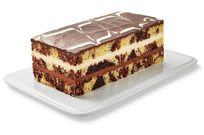 Celebrate and make any day a special occasion with the Tuxedo Truffle Mousse Bar Cake from This tuxedo mousse bar cake features layers of marbled cake and decadent chocolate mousse for a scrumptiously sweet dessert your family and friends will love. Slice it thin and serve with ice cream for an a la mode treat, or serve with mixed berries for a bright, summery finish to your day. A little bliss in every bite. Guaranteed to be a favorite or your money back. Packaging: Reusable