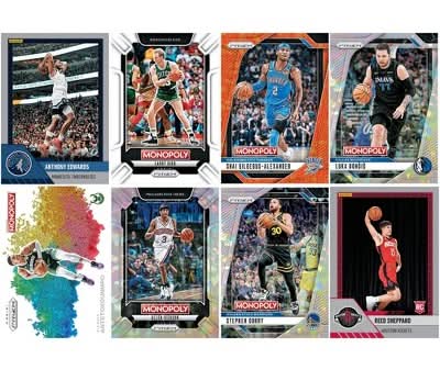 Collect, trade, and compete in the with 2024-25 & Legends Panini 3 rd edition NBA trading cards. In this version of the Monopoly game, use Panini cards to draft a team of NBA players. Then, instead of buying Properties, try to take control of NBA Games and collect points from opponents who land on them. To earn more points, reveal and compare the stats on their Panini cards when competing against others in Playmaker challenges and the NBA Finals. The player with the highest score at the end of the game wins! Looking for fun games for Family Game Night or cool gifts for kids or collectors. This strategy board game for kids and adults who love basketball is a slam dunk. The Hasbro and Monopoly names and logos, the distinctive design of the gameboard, the four corner squares, the Mr. Monopoly name and character, as well as each of the distinctive elements of the board and playing pieces are trademarks of Hasbro, Inc. for its property trading game and game equipment. Includes Gameboard, 4 Plastic Basketball Tokens, 16 Panini 2024-25 NBA Trading Cards (one 8-card Starter Pack, two 4-card Prizm Packs), 16 NBA Game Cards, 9 NBA Finals Cards, 12 Playmaker Cards, 1 Die, 1 Cardboard Jump Ball, 90 Cardboard Point Chips, and Game Guide. For 2 to 4 players. All cards are randomly inserted across the production run and are not guaranteed in any individual pack, box or case. Panini America, Inc. or Hasbro, Inc. makes no representation as to the future value of its cards, or that its cards will receive a specific professional grade as some imperfections are possible during the production process.