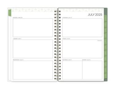 The 2025-2026 school year planner from artist Yao Cheng has simple lined weekly layouts, tabbed monthly views, and extra writing space to help you find focus and calm. A clear storage pocket secures receipts and small documents. Ideal for students, teachers, and parents, the Yao Cheng for Blue Sky productivity planner provides a peaceful place to keep track of your schedule and jot down ideas. It covers all your scheduling needs from July 2025 to June 2026 and has a crease-resistant, flexible cover to withstand travel and daily use. • Color: Orange • Size: 5x8 in