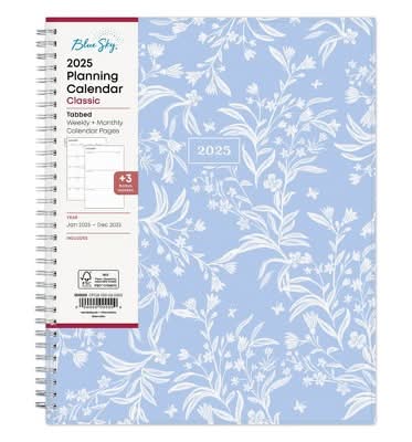Organize tasks with the 2025 planner from Blue Sky. This simple weekly monthly planner has plenty of room for notes, lined weekly views, and tabbed monthly calendars to keep you focused. With its 8.5 x 11 page size, you can easily fit your to-do lists, ideas, and appointments in one paper planner. With dedicated pages for your contacts, goals, and important dates, the 2025 Blue Sky planner is the perfect way to meet deadlines and get more done. Size: 11.18"x9.37"