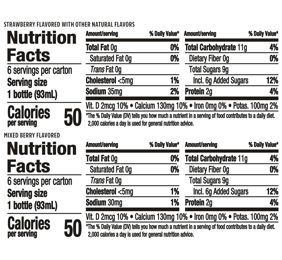Ingredients: Mixed Berry Flavored: Mixed Berry Flavored Ingredients: Cultured Grade A Low Fat Milk, Water, Cane Sugar, Modified Food Starch, Contains Less than 1% of Milk Minerals, Natural Flavors, Fruit & Vegetable Juice (for Color), Lemon Juice Concentrate, Vitamin D3, Active Yogurt Cultures S. Thermophilus & L. Bulgaricus. Strawberry Flavored with Other Natural Flavors: Strawberry Flavored with Other Natural Flavors Ingredients: Cultured Grade A Low Fat Milk, Water, Cane Sugar, Modified Food Starch, Contains Less than 1% of Milk Minerals, Fruit & Vegetable Juice (for Color), Natural Flavors, Lemon Juice Concentrate, Vitamin D3, Active Yogurt Cultures S. Thermophilus & L. Bulgaricus. Contains: Contains milk.