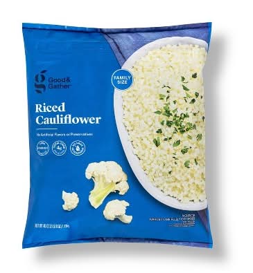 This Frozen Riced Cauliflower from Good & Gather is a perfect, vegetable-forward pick for quick and easy weeknight dinners. This family-sized bag features plain riced cauliflower, without sauce or seasoning and has no artificial flavors or preservatives. Great as a side dish, you can also add ground meat, plant-based meat alternatives, tofu and more to make a tasty main course. Every product that carries the Good & Gather™ name starts with quality ingredients that deliver great taste, making it easier for you and your family to eat well every day. We promise you’ll love each bite or your money back.