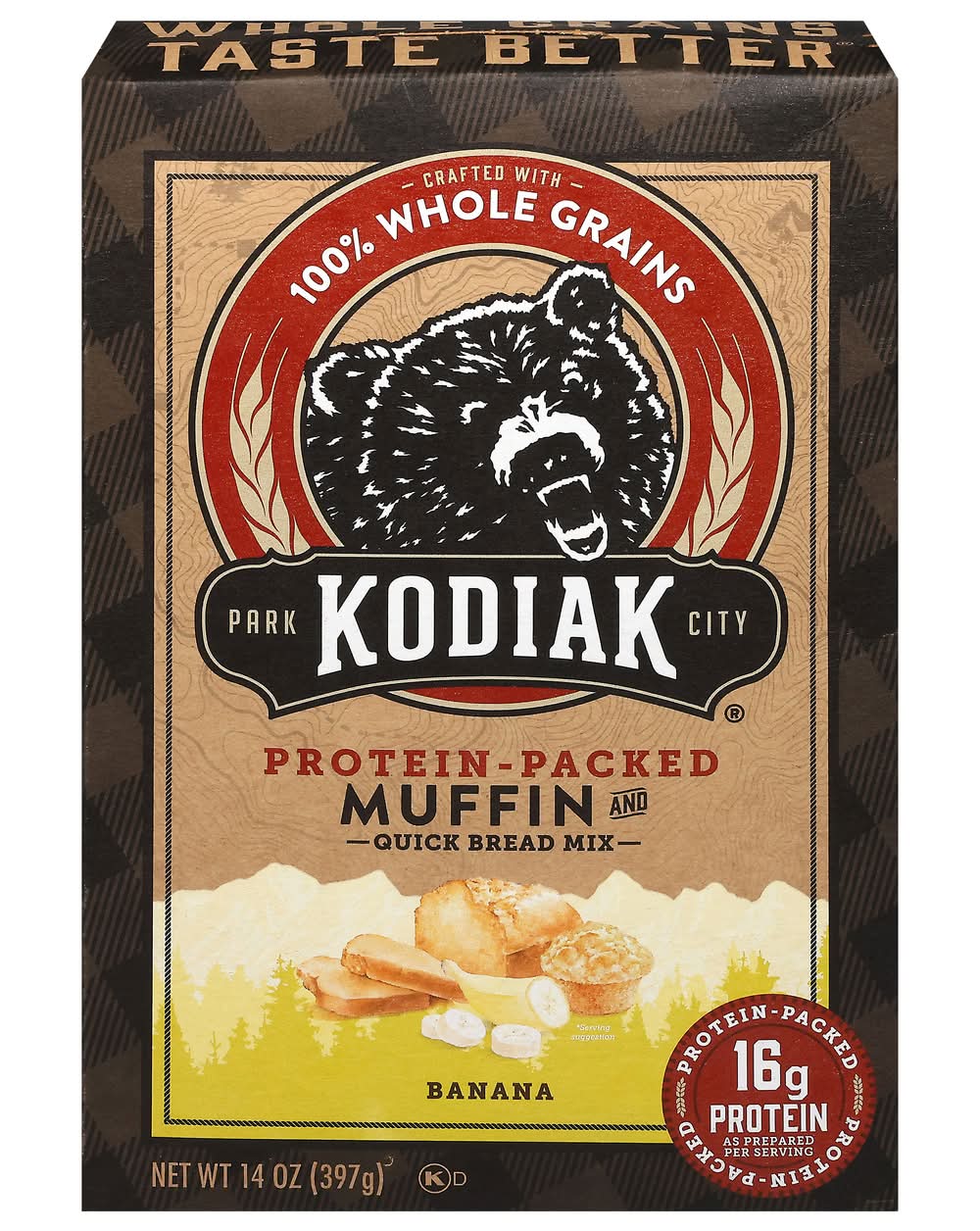 Frontier food restored over-processed ingredients had no place on the frontier; instead pioneers relied on real, wholesome foods that were full of what they needed to take on each day ahead. These recipes inspired Kodiak to create whole-grain and protein-packed foods for today's frontier. Kodiak muffin and quick bread mix is simple to make and contains 100% whole grains which means you're just a few steps away from a filling meal before your next adventure. While the days of axes and ox wagons have come and gone, we still maintain that dedication to giving folks food • Flavor: Banana • Packaging: Reusable