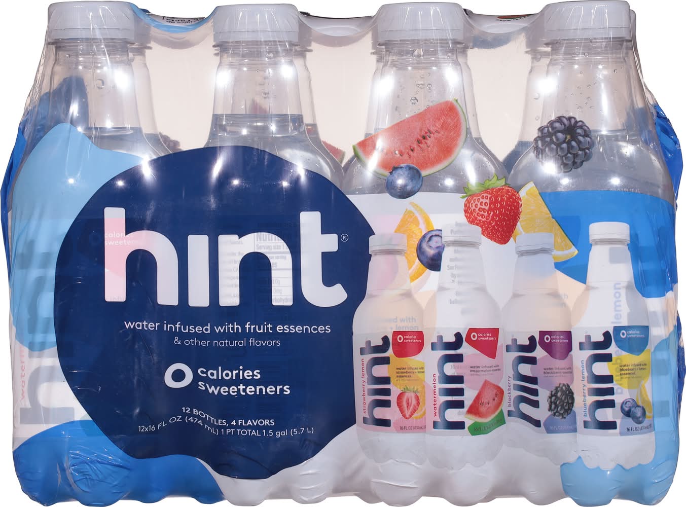 Hint Fruit Essence Infused Water Variety pack, Strawberry Lemon Watermelon Blackberry Blueberry Lemon (12 x 16 fl oz)