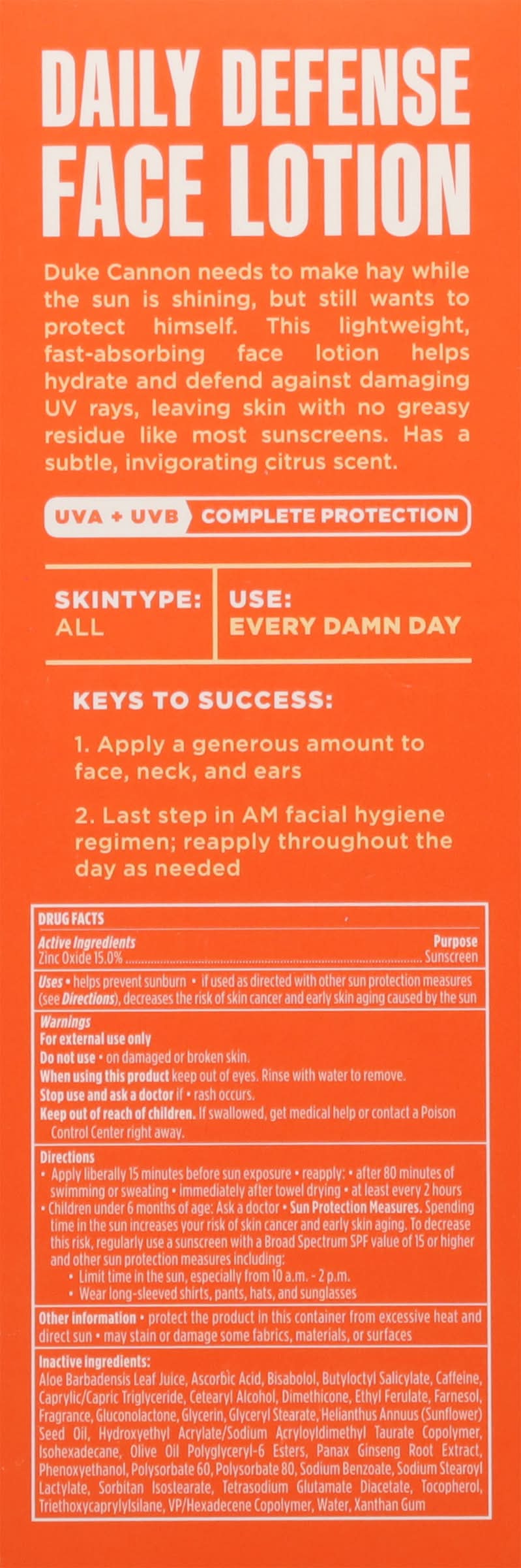 Duke Cannon Daily Defense Face Lotion Spf 32 Moisturizer For Men (3 fl oz)