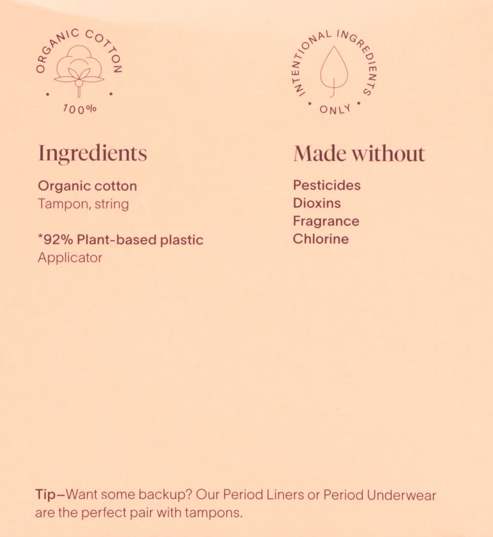 Usage of instructions:tip - want some backup? our period liners or period underwear are the perfect pair with tampons. - directions: tip - want some backup? our period liners or period underwear are the perfect pair with tampons.