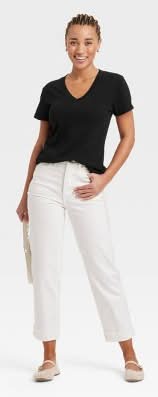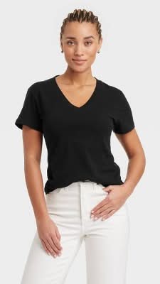 Universal Thread Short Sleeve V-Neck T-Shirt, Women, M, Black