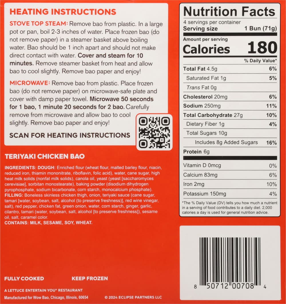 Wow Bao Teriyaki Chicken (10 oz, 4 ct)