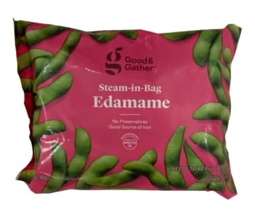 Whether you're making appetizers for a get-together or looking for an easy side dish for an everyday meal, frozen Steam in Bag Edamame from Good & Gather™ makes a great pick. This edamame has been frozen without preservatives for fresh taste, and it's a good source of iron, making it a great addition to your table. The bagged edamame is microwaveable, letting you get it served up in minutes. Enjoy the edamame on its own with a sprinkling of sea salt for a simple yet tasty snack, or turn it into a salad with corn, cherry tomatoes and cauliflower rice. Every product that carries the Good & Gather™ name starts with quality ingredients that deliver great taste, making it easier for you and your family to eat well, every day. We promise you’ll love each bite, or your money back. All Good & Gather products are made without artificial flavors, synthetic colors, artificial sweeteners, and high-fructose corn syrup. Some are specially formulated while others never contained these ingredients.