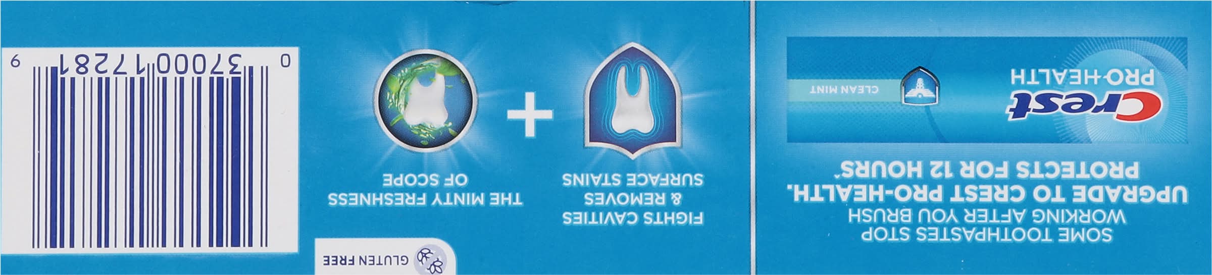 Toothpaste, Anticavity, Fluoride, Minty Fresh Striped, Travel Friendly Size • Procter & Gamble, Cincinnati, OH, 45202, Ph: 800-492-7378 • Packaging: Reusable