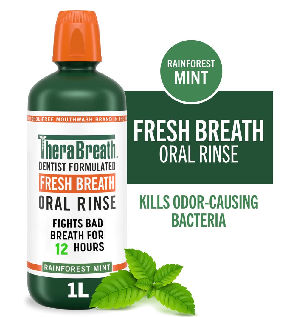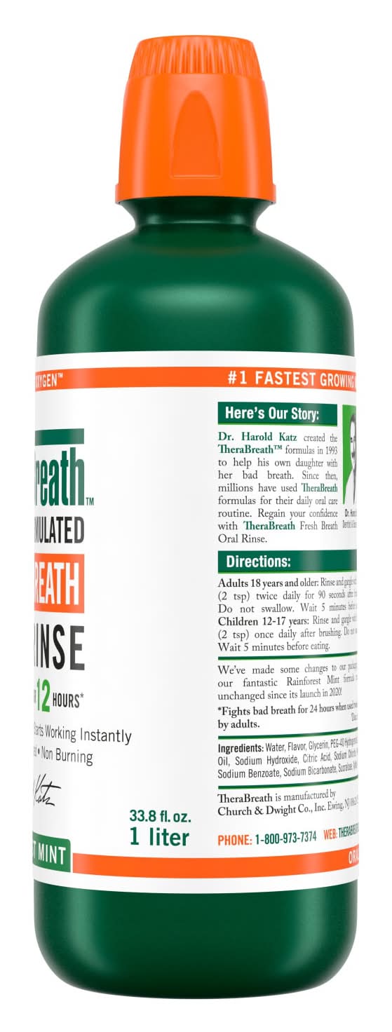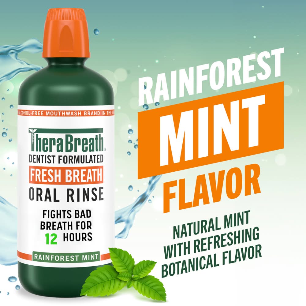 TheraBreath Fresh Breath Oral Rinse, Rainforest Mint (33.8 fl oz)