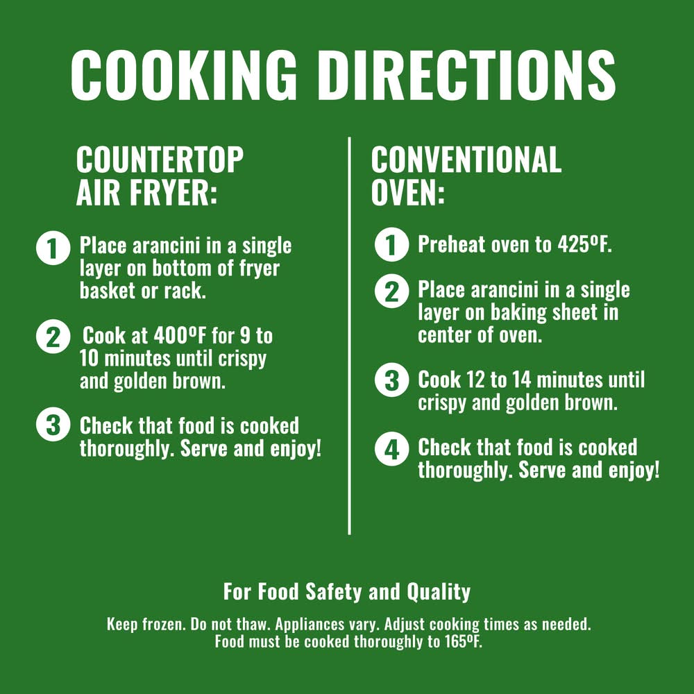 Create an authentic Italian-inspired food experience in the comfort of your own home with Bertolli Parmesan Arancini. Risotto, Italian herbs and Parmesan cheese coated in bread crumbs provide a mouthwatering appetizer that everyone is sure to enjoy. Made with no preservatives and no artificial flavors or colors, these wholesome frozen arancini balls are easy to prepare in the oven or air fryer. Stock your freezer with a variety of our frozen appetizers that are ideal for a side dish or when you're craving arancini but have limited time. Pair your crispy Parmesan Arancini appetizer with salad, bread and your favorite wine, or enjoy it all by itself. Bertolli frozen meals and appetizers are full of flavor and thoughtfully prepared in Italian tradition. Flavor: Parmesan