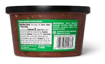 Give a little kick to your favorite Tex-Mex dishes with the Medium Serrano Pepper Salsa from Good & Gather™. This hearty salsa is a bold blend of diced tomatoes, onion, green bell pepper, cilantro and garlic, with serrano pepper and more, adding a bit of flavorful heat that won't overwhelm the taste of your food. You'll appreciate the fact that this Texas made serrano pepper salsa has no artificial flavors or preservatives. Whether you use it for a simple chips-and-dip platter or mix into your favorite chili recipe to take it up a notch, this salsa is sure to become a fast favorite. Every product that carries the Good & Gather™ name starts with quality ingredients that deliver great taste, making it easier for you and your family to eat well, every day. We promise you’ll love each bite, or your money back.
