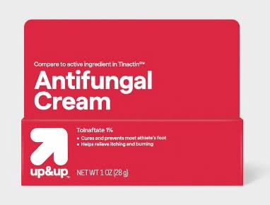 If painful symptoms of athlete's foot or ringworm are interfering with activities you enjoy, help kick your symptoms and prevent recurrence with up & up™ Tolnaftate Antifungal Cream. This antifungal cream comes in a convenient one-ounce tube and helps relieve painful symptoms of athlete's foot and ringworm like itching, burning and cracking while also treating the infection itself. Easy to apply and to take on the go, this antifungal athlete's foot cream contains the same active ingredient as Tinactin to soothe and treat most athlete's foot and ringworm. 100% Satisfaction Guaranteed. Merck Co & INC, 126 East Lincoln Avenue P.O. Box 2000. Rahway, NJ 07065
