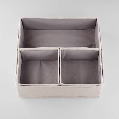 Keep clothing and accessories neatly organized while creating a coordinated, tidy look in your drawers with this Set of 4 Collapsible Fabric Drawer Organizers from Brightroom. Made with recycled polyester fabric, these drawer organizers feature an open design that makes it easy to find what you’re looking for. They’re also modular so the smaller pieces can be placed inside the larger one, or they can be used separately in a variety of ways. Plus, these drawer organizers are collapsible to make them storing-friendly when not in use. Brightroom started with a simple truth: When you’ve got it together, you feel better. Our versatile designs reveal the possibility in every closet, cupboard and drawer, and work together to create brilliant ways to organize your every day. Color: Linen