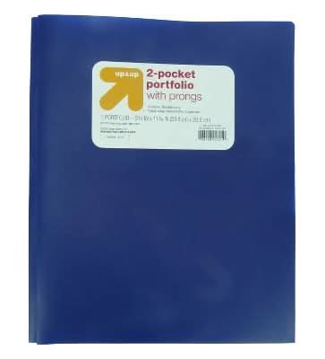 Easily organize important papers and documents in this Two-Pocket Plastic Folder with Prongs from up & up. This plastic file folder has two pockets to keep your documents, test papers, medical prescriptions or any other bills or receipts in a well-organized manner. The file folder comes with prong fasteners to keep your documents intact, making it perfect for home, school or the office. • Color: Blue • Size: 9.37" X 11.3"
