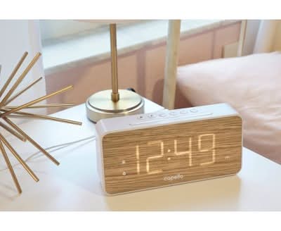 Capello Display Digital Alarm Clock With Usb, XL, White-Pine