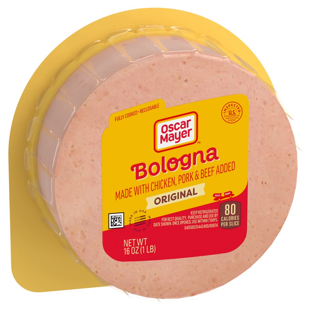 Our Bologna is Made With Chicken & Pork, Beef Added Lunch Meat is quality sliced meat made without fillers, so you can enjoy the taste you want with nothing you don't. Enjoy bologna Made With Chicken & Pork, Beef Added slices on wheat bread with American cheese for a delicious bologna sandwich, or add it to deli platters for party guests to mix and match their favorite sandwich meats with other flavors. Delicious Oscar Mayer Bologna Made With Chicken & Pork, Beef Added slices are the ideal sandwich meat for kids and parents alike. Fully cooked, ourIt is ready to eat and comes in a 16-ounce resealable package to ensure freshness. Keep refrigerated and use within 7 days of opening. If you enjoy our deli bologna, be sure to try the other varieties of Oscar Mayer lunch meat.